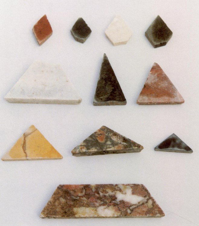 Manufatti della villa romana di Torre, intonaci affrescati, rivestimenti marmorei pregiati. Esposti nelle sale 15-16